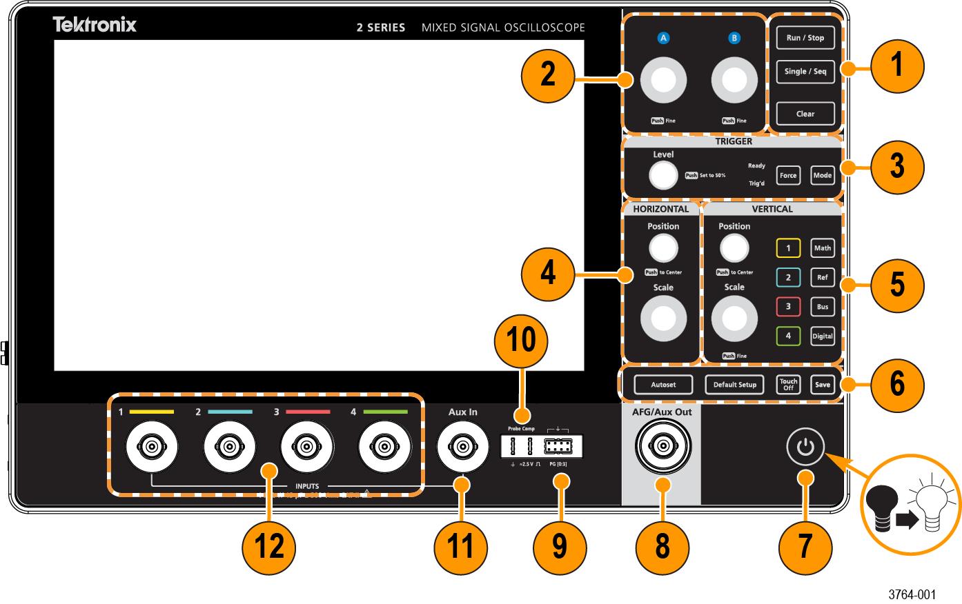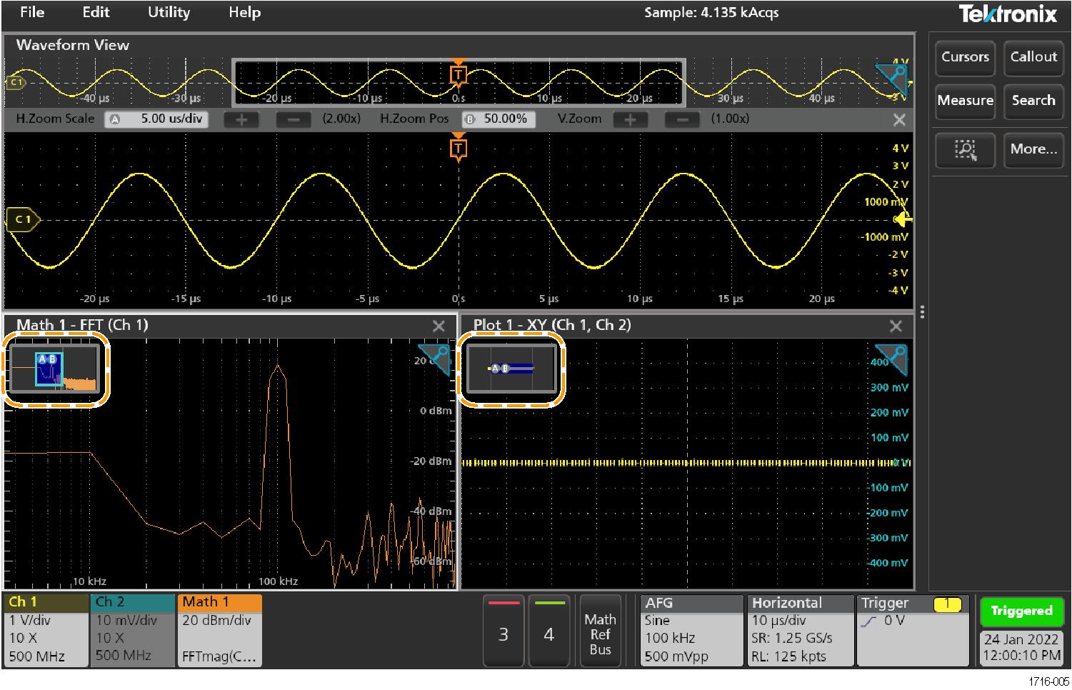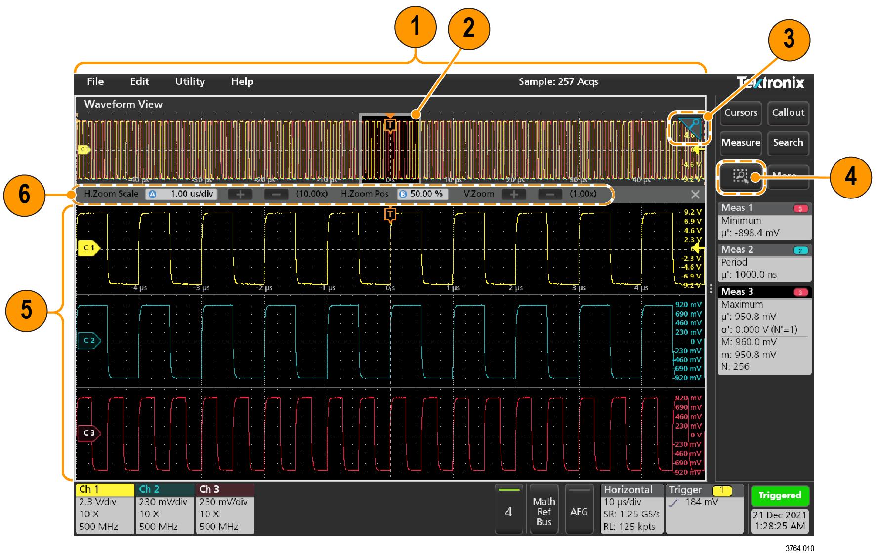 | Add a channel, math, reference, or bus waveform to the screen.  | Tap an inactive channel button, Add New Math, Add New Reference, or Add New Bus button.  | Click an inactive channel button, Add New Math, Add New Reference, or Add New Bus button.  |