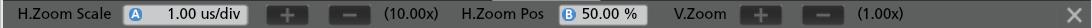| Increase or decrease the zoom area while in Zoom mode. | Touch and hold two fingertips on the waveform view, move them together or apart vertically or horizontally, lift from screen; repeat.  | Click the + or - buttons on the Zoom Title bar.  |