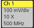 | Select a channel, math, reference, or bus waveform to make it active  | Stacked or Overlay mode: Tap the Channel or Waveform badge.  | Stacked or Overlay mode: Left-click the Channel or Waveform badge.  |