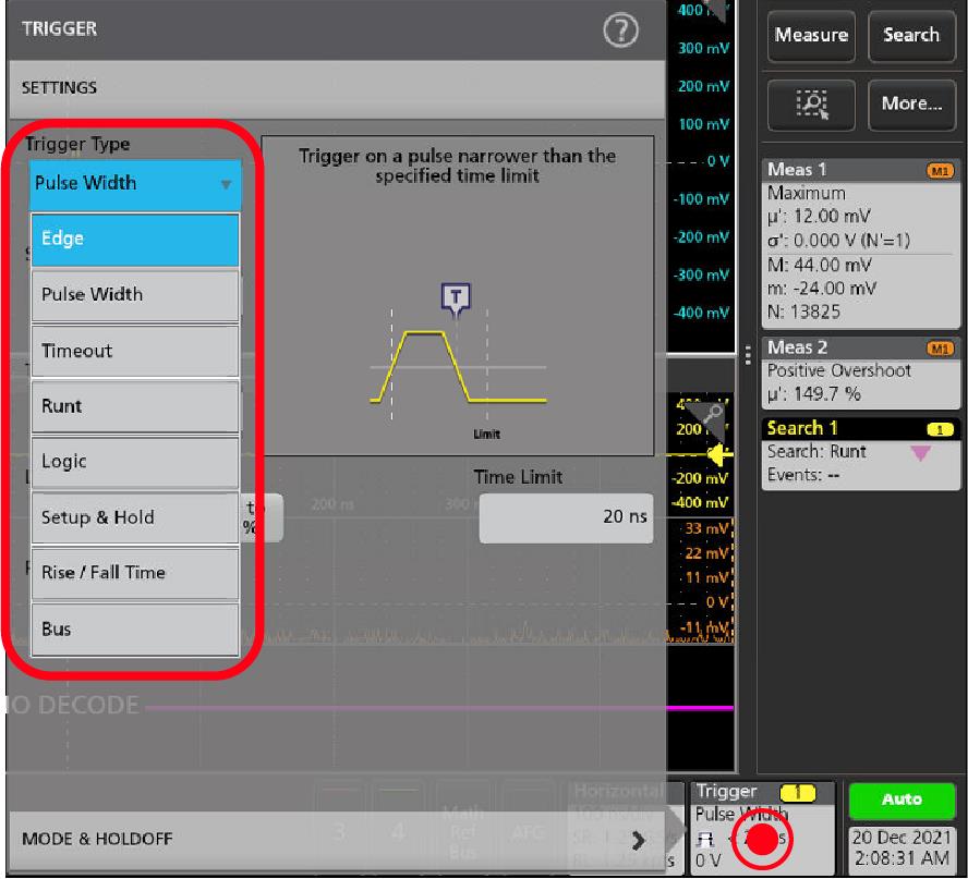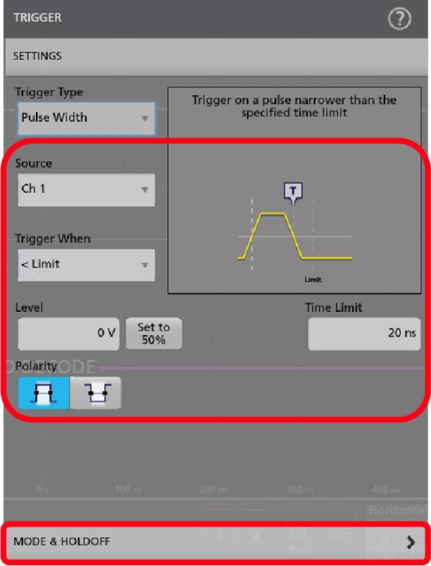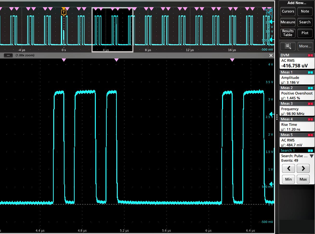 | Close or open the Results Bar to increase the Waveform View area.  | Tap on the Results Bar Handle (three vertical dots in border) or anywhere in the border between the Waveform View and the Results Bar.  | Click the Results Bar Handle (three vertical dots in border) or anywhere in the border between the Waveform View and the Results Bar.  |