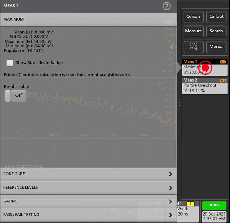 | Display scale or navigation buttons on a badge (waveform, measurement, search, horizontal). Not all measurement or search badges display navigation buttons.  | Tap the badge.  | Click the badge.  |