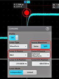 | Stacked mode: Tap the channel, math, reference, or bus waveform slice or handle.  | Stacked mode: Left-click the channel, math, reference, or bus waveform slice or handle.  |