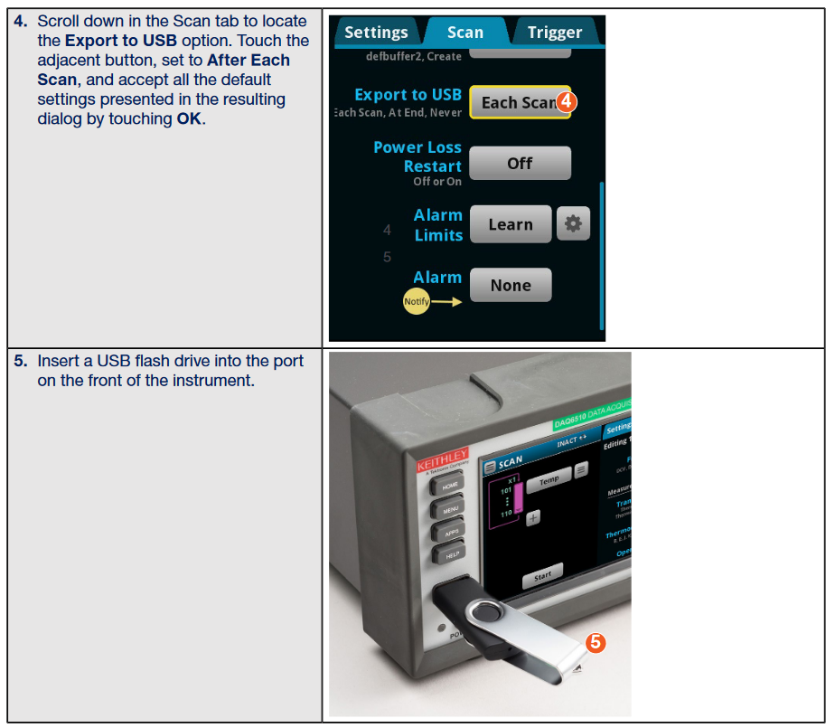 - Because lab setups can have limited resources, the setup will assume no PC is available, but the measured data must still be preserved. Therefore, the data will be exported to a USB flash drive for each of the scans executed.
