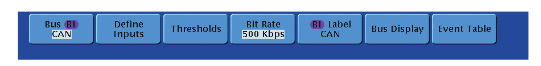 Support for digital audio buses is available on several Tektronix oscilloscope product families (see Appendix A). Using a front panel Bus button, we can define an audio bus by simply entering basic bus parameters such as word size, signal polarities, bit order, and thresholds. TDM definition also requires the number of data bits per channel, clock bits per channel, bit delay, and the number of channels per frame.
