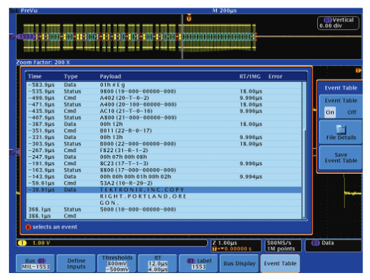 With the available serial triggering and analysis options, you can easily view MIL-STD-1553 serial signals, analyze them,and correlate them to other events in your design.