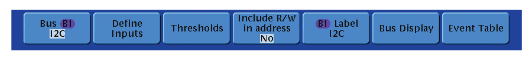 With the optional serial triggering and analysis capability, Tektronix oscilloscopes become powerful tools for embedded system designers working with I2 C buses. The front panel has Bus buttons that allow the user to define inputs to the scope as a bus. The I2 C bus setup menu is shown in Figure 5.