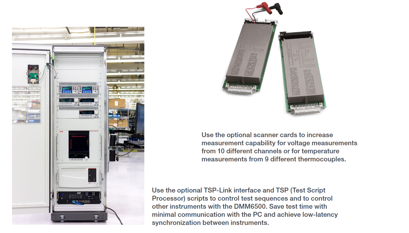 • Control other instruments and execute a test with the built-in scripting code and the Test Script Processor (TSP®), TSP-Link® I/O option