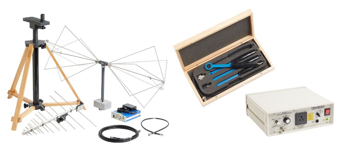 - Calibrated EMI antennas that cover the ranges 30 MHz to 1 GHz (typically a wideband dipole designed for 30 to 200 MHz and a log-periodic designed for 200 to 1000 MHz) and 1 to 6 GHz (typically a horn antenna designed for 1 to 18 GHz). These will come with antenna factor calibration data.