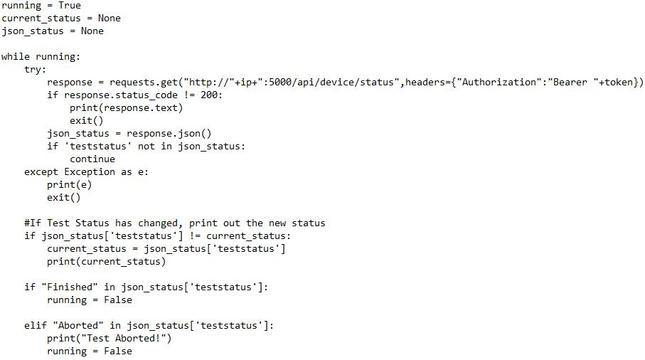 - View the 'teststatus' key in the return object to view the current test status.