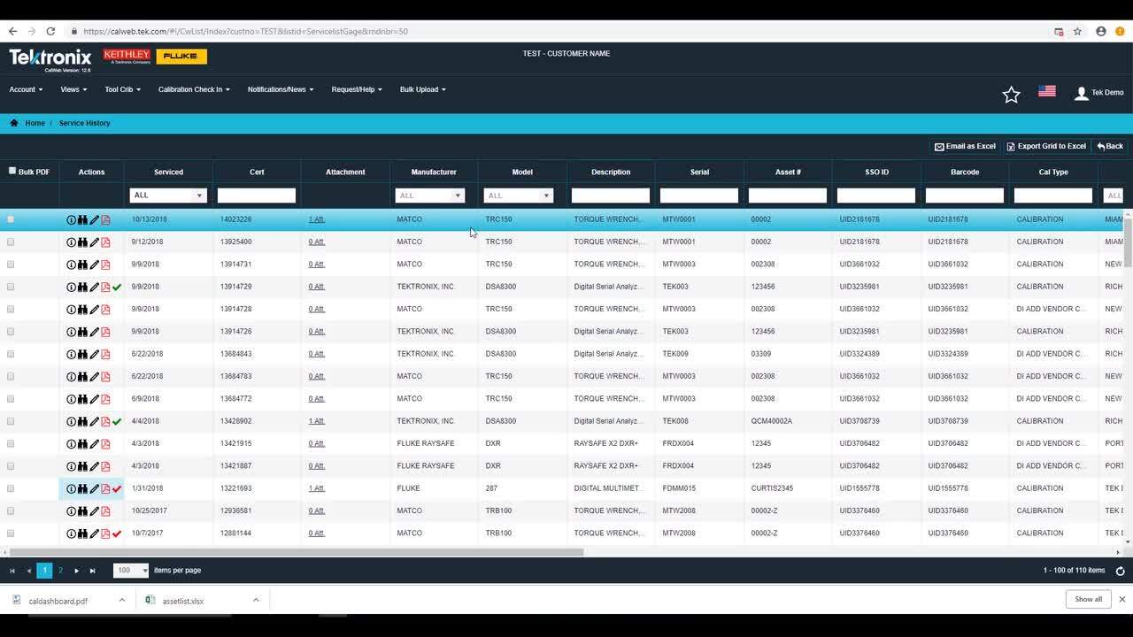 The CalWeb online portal frees you from the manual management of your entire calibration program. Simplify workflows, eliminate overdue calibrations, and streamline audit compliance with CalWeb. With access to CalWeb data and tools, you’ll save time and reduce calibration program complexity. Every day, thousands of Tektronix calibration service customers in mission-critical industries rely on CalWeb for audit compliance and increasing engineering uptime.